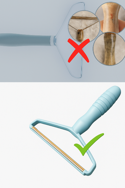 . Many conventional removers have metal blades or handles made of wood or inferior materials. These can rust, rot, or become discolored by moisture – making them unhygienic and short-lived.